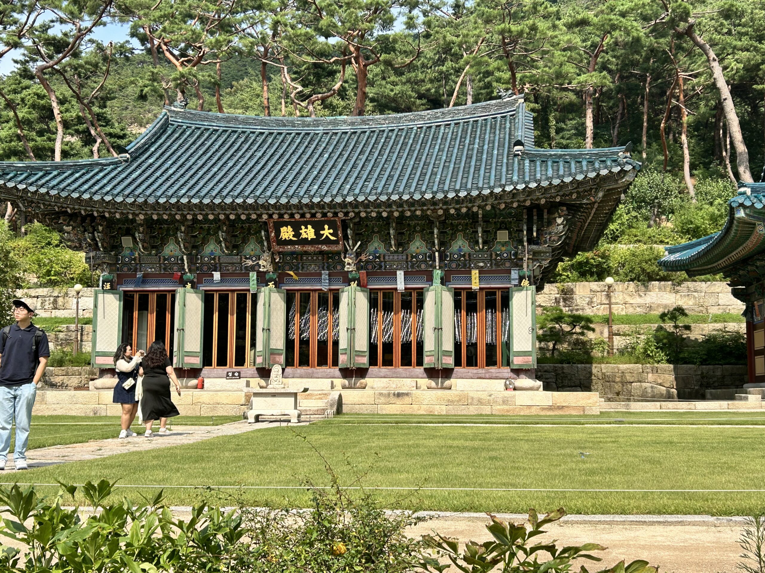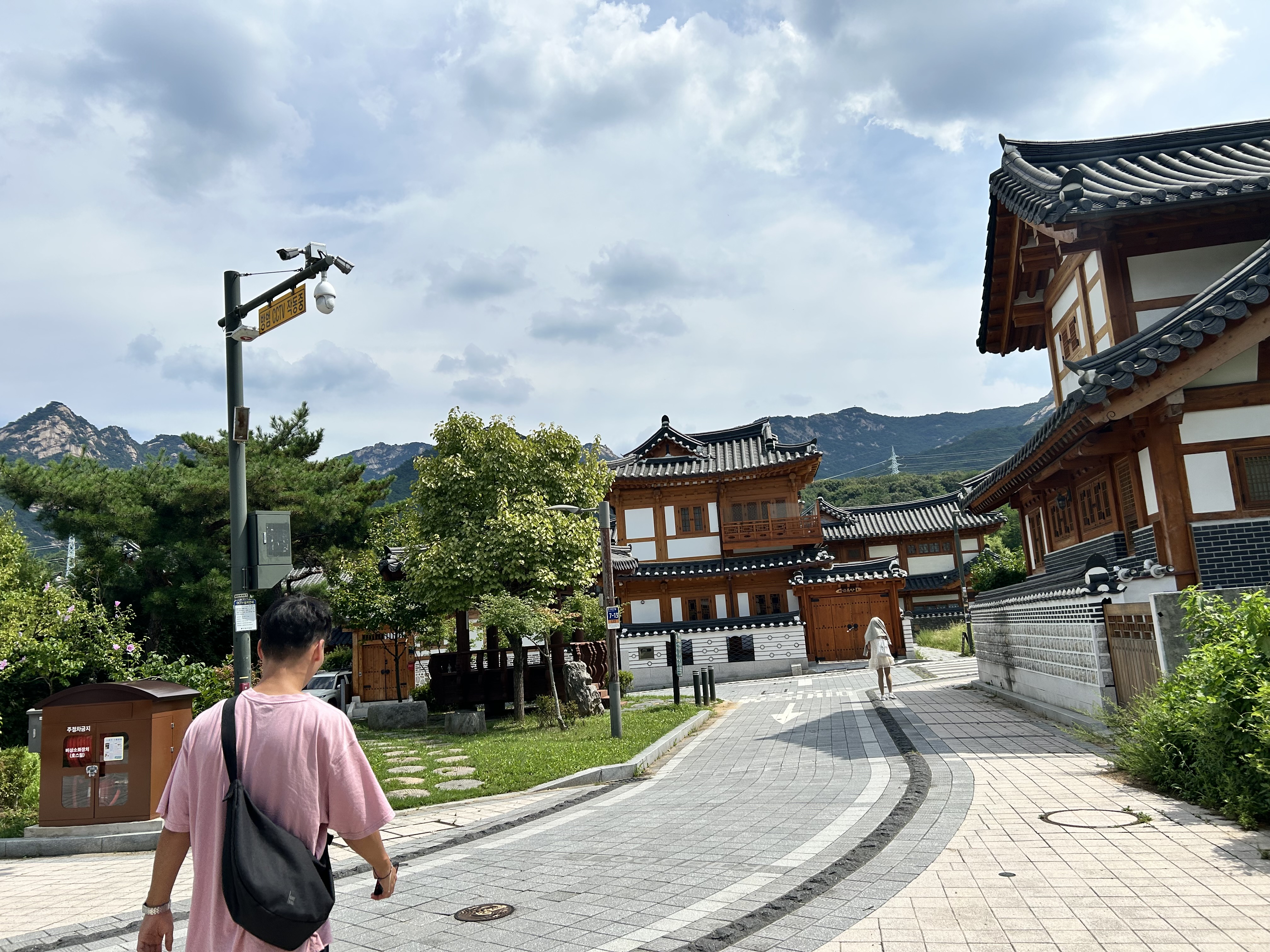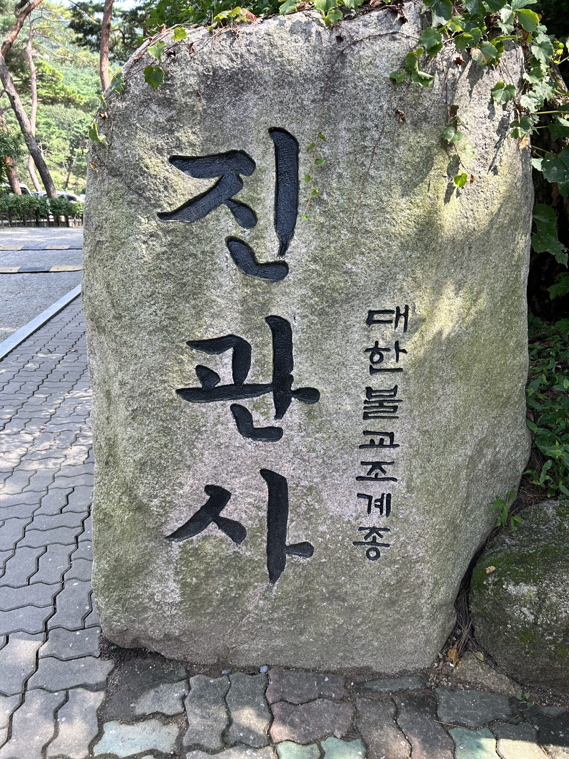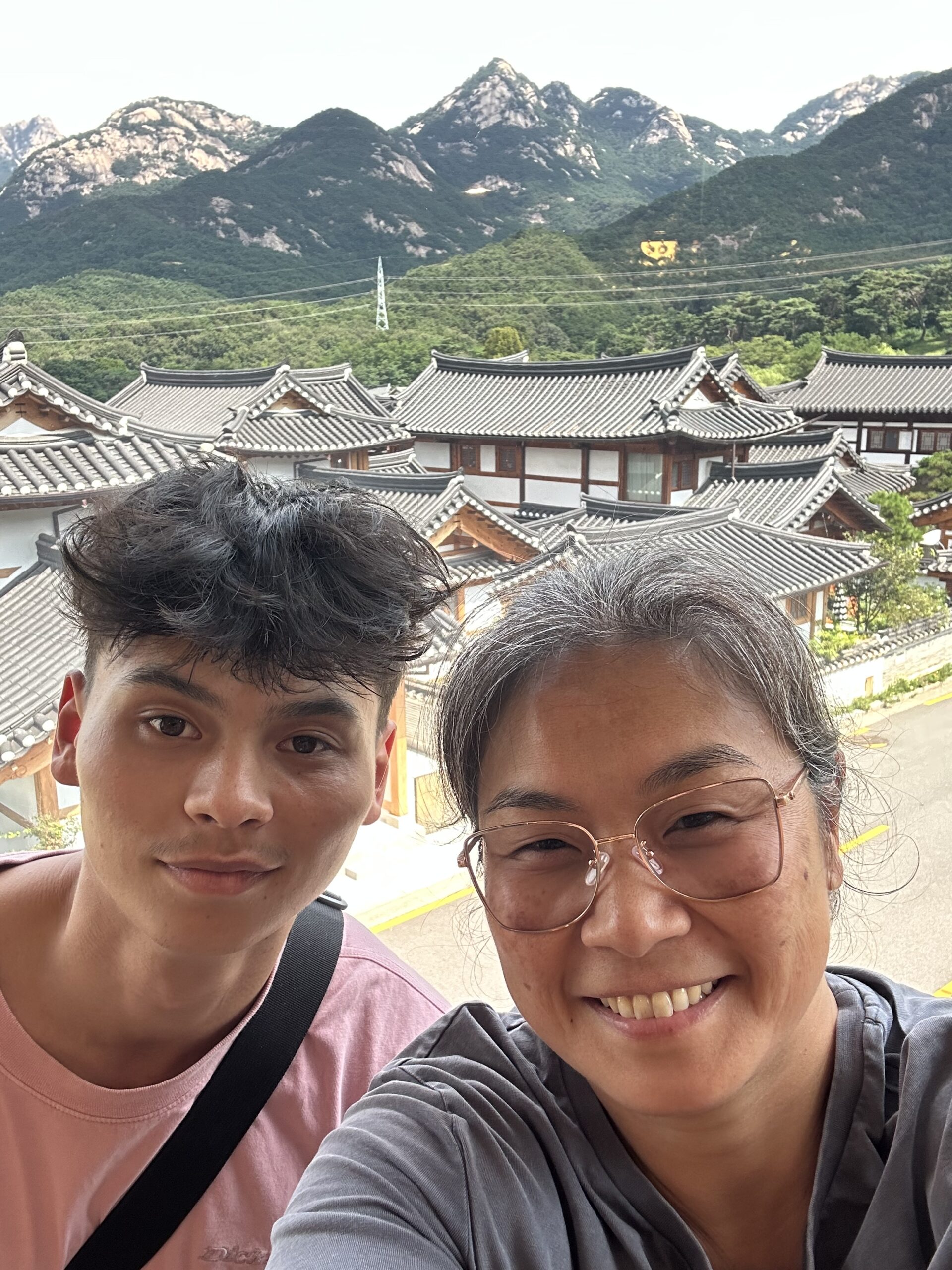 J’ai Peu dormi dans l’avion, à chaque fois tout tourne en boucle (des pensées, l’adoption, le retour au Pays). Au vu de l’inconfort et de la peur ressentis ces 10 mois depuis la décision de faire ce voyage je sais que ce que je vais trouver, récupérer, vivre est au moins égal. Une émotion est montée, de l’intérieur et du plus profond de mes cellules. Mon corps vibre et se retrouve « activé » par les énergies de ce Pays. L’installation faite et un brin de toilettes nous décidons de profiter de cette première journée et pour notre première visite nous nous dirigeons vers le village de Hanok à Eunpyeong-gu. C’est beau, calme et apaisant : ces villages habités portent l’histoire traditionnelle de la Coree et s’adapte dans la vie actuelle. Nous marchons dans les rues et dans un petit parc, nous sommes imprégnés de cette paix et du calme. Il est temps de manger, notre premier repas sera « malheureusement » pas coréen mais nous nous rattraperons, nous aurons le temps, et nous décidons d’aller découvrir le temple Jingwansa.